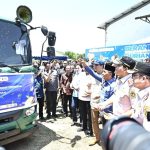 PALU– Gubernur Sulawesi Tengah (Sulteng), Anwar Hafid didampingi Ketua TP-PKK Sulteng, Sry Nirwanti Bahasoan serta Wakil Gubernur Reny A Lamadjido melepas ekspor