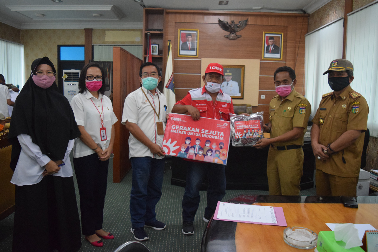 SultengTerkini.Com, PALU– Pemerintah Kota (pemkot) Palu menerima bantuan sejumlah masker dari pihak Telkom guna pencegahan penyebaran Covid-19 bertempat di ruang kerja Walikota Palu pada Senin (19/10/2020).