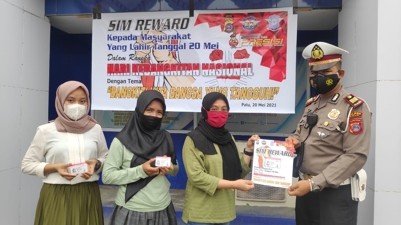 Kapolres Palu, AKBP Riza Faisal melalui Kepala Satlantas, AKP Muhammad Nai mengatakan, pembuatan SIM gratis bagi warga yang lahir pada 20 Mei sebagai bentuk hadiah terindah sekaligus memperingati Hari Kebangkitan Nasional.