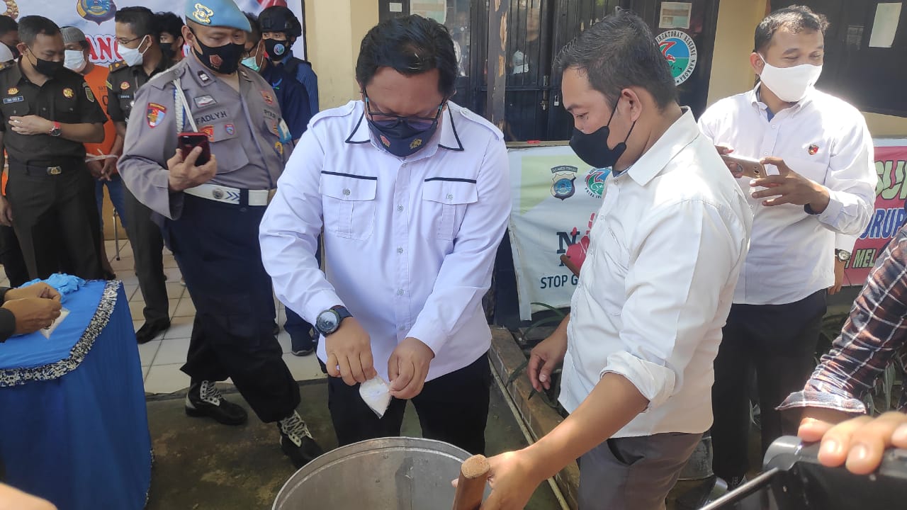 Barang bukti sabu-sabu itu dimusnahkan dengan cara direbus dalam wadah yang sudah disiapkan lalu dibuang ke selokan dengan disaksikan para pejabat terkait seperti dari kejaksaan, pengadilan negeri, serta kementerian hukum dan hak asasi manusia. CAL