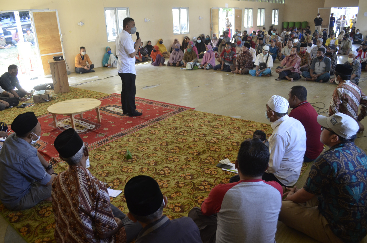 SultengTerkini.Com, PALU– Wali Kota Palu, Hadianto Rasyid melakukan pertemuan dengan masyarakat Kelurahan Petobo di Gedung Serbaguna Huntara PUPR, Ahad (30/5/2021).