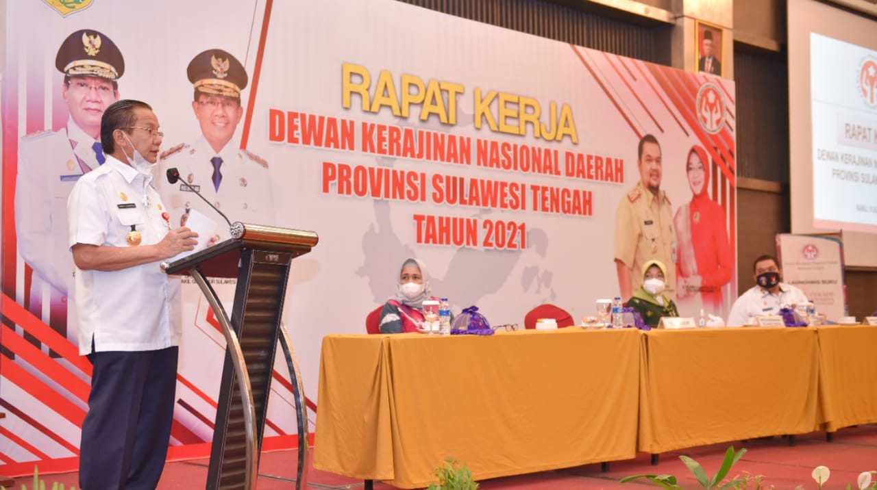 SultengTerkini.Com, PALU– Gubernur Sulawesi Tengah (Sulteng), Longki Djanggola membuka Rapat Kerja (Raker) Dewan Kerajinan Nasional Daerah (Dekranasda) Sulteng di sebuah hotel Jalan Basuki Rahmat, Kota Palu, Rabu (9/6/2021).