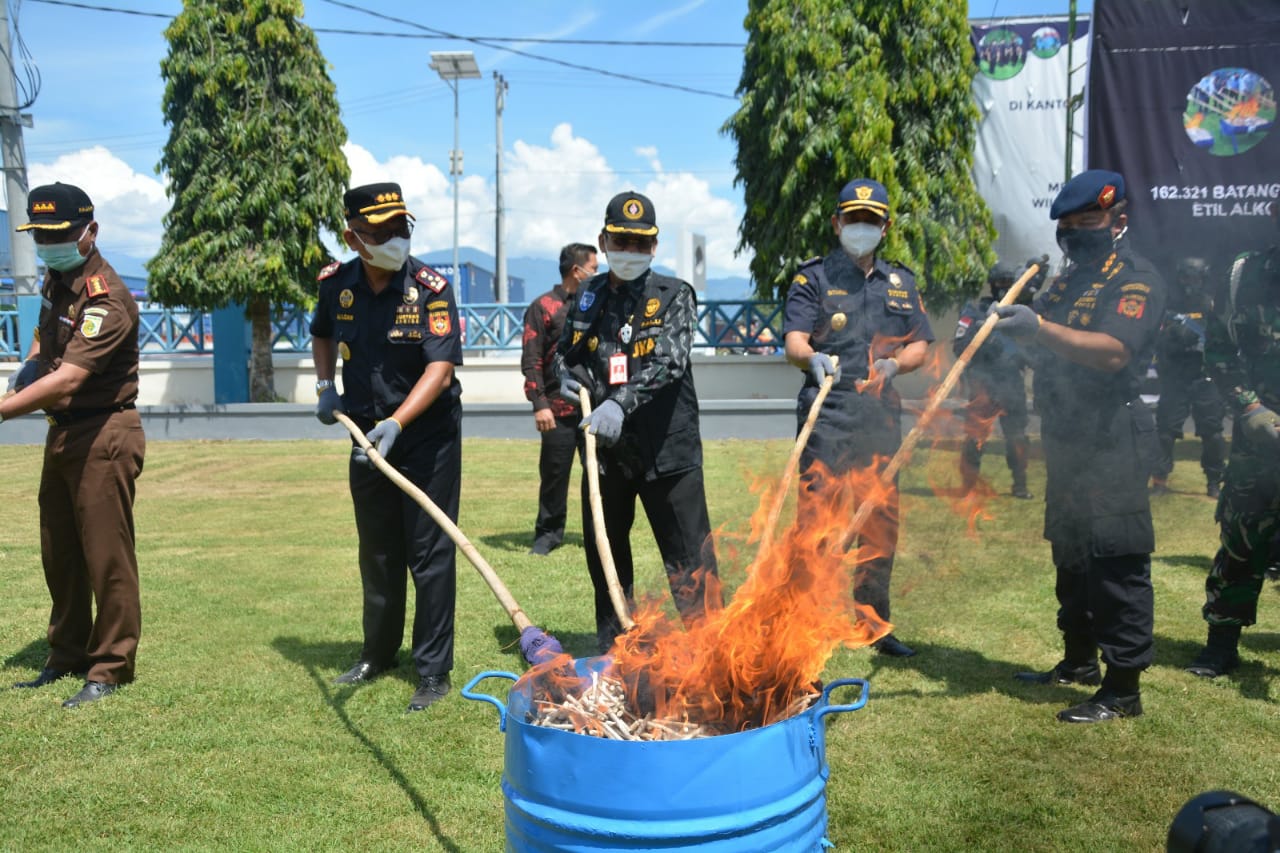 SultengTerkini.Com, PALU– Pihak Kantor Pelayanan dan Pengawasan Bea Cukai (KPPBC) Tipe Madya Pabean C Pantoloan, Kota Palu, Sulawesi Tengah (Sulteng) memusnahkan 162.321 batang rokok ilegal dan minuman beralkohol hasil penindakan 2020.