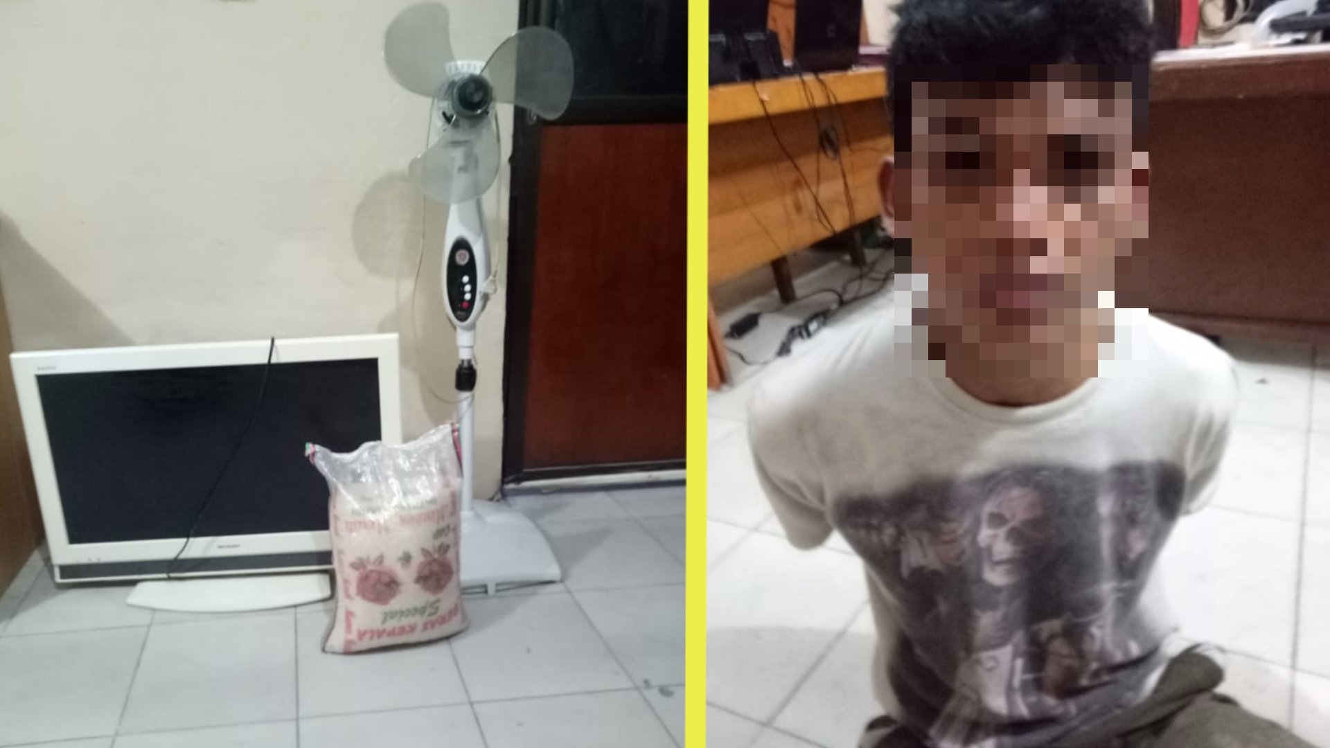 Adapun barang bukti yang diamankan yakni sebuah televisi Sharp 32 inci, kipas angin Maspion, dan satu karung beras 10 kilogram. HAL
