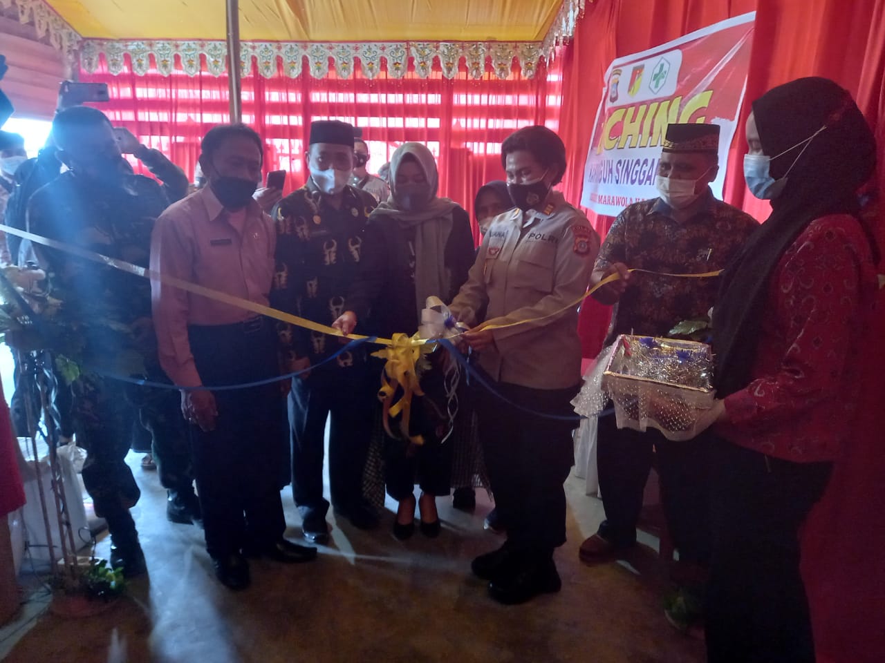 KABAG Ren Polres Sigi, AKP Yuliana Ritha menggunting pita menandai peluncuran Kampung Tangguh di Desa Sibedi Kecamatan Marawola, Kamis (10/6/2021). FOTO: POLRES SIGI