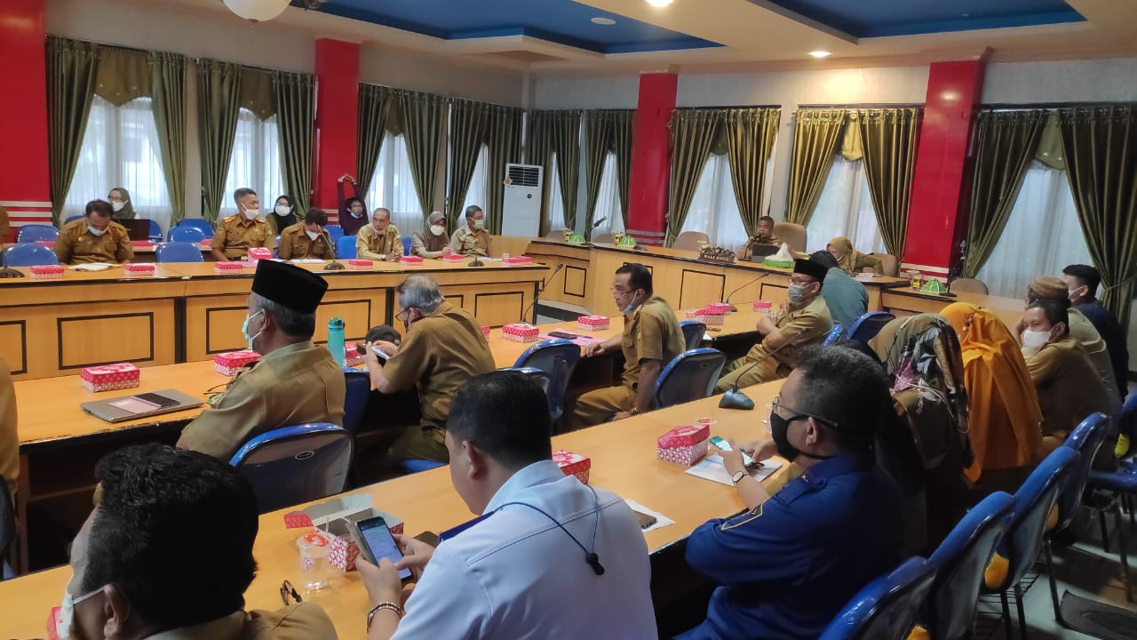 WALI KOTA Palu, Hadianto Rasyid memimpin rapat koordinasi capaian 53 program kerja 100 hari di ruang rapat Bantaya kantor waliota setempat, Selasa (15/6/2021) pagi. FOTO: ICHAL/SULTENGTERKINI.COM