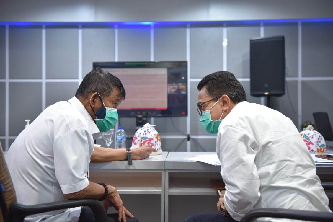 SultengTerkini.Com, PALU– Gubernur Sulawesi Tengah (Sulteng), Rusdy Mastura didampingi Kasat Pol PP dan Kadis Kesehatan Sulteng mengikuti Rapat Koordinasi Terbatas (Rakortas) secara online tentang Pemberlakuan Pembatasan Kegiatan Masyarakat (PPKM) Mikro diperketat yang dipimpin Menko Perekonomian, Airlangga Hartarto, Rabu (7/7/2021).