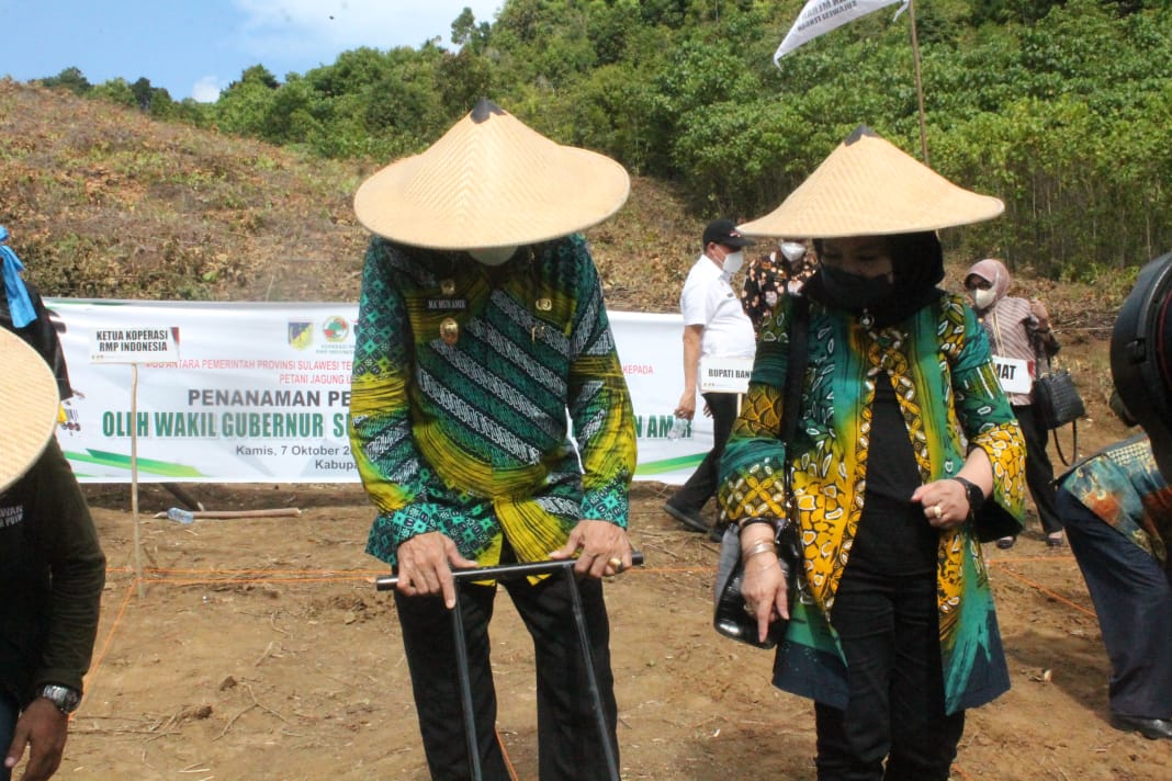 BANGKEP– Wakil Gubernur (Wagub) Sulawesi Tengah (Sulteng), Ma’mun Amir melakukan penanaman perdana tanaman jagung di Desa Tompodau, Kecamatan Tinangkung, Kabupaten Banggai Kepulauan (Bangkep), Kamis (7/10/2021).