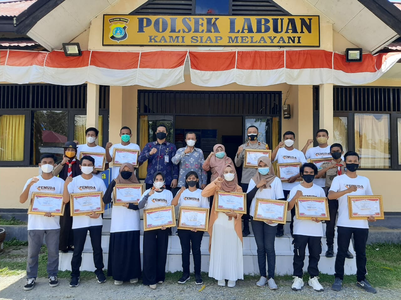 Kapolsek Labuan menerima penghargaan sebagai Pembina Pemuda Pionir yang telah berkontribusi melibatkan para pemuda untuk peduli kamtibmas dan vaksinasi.