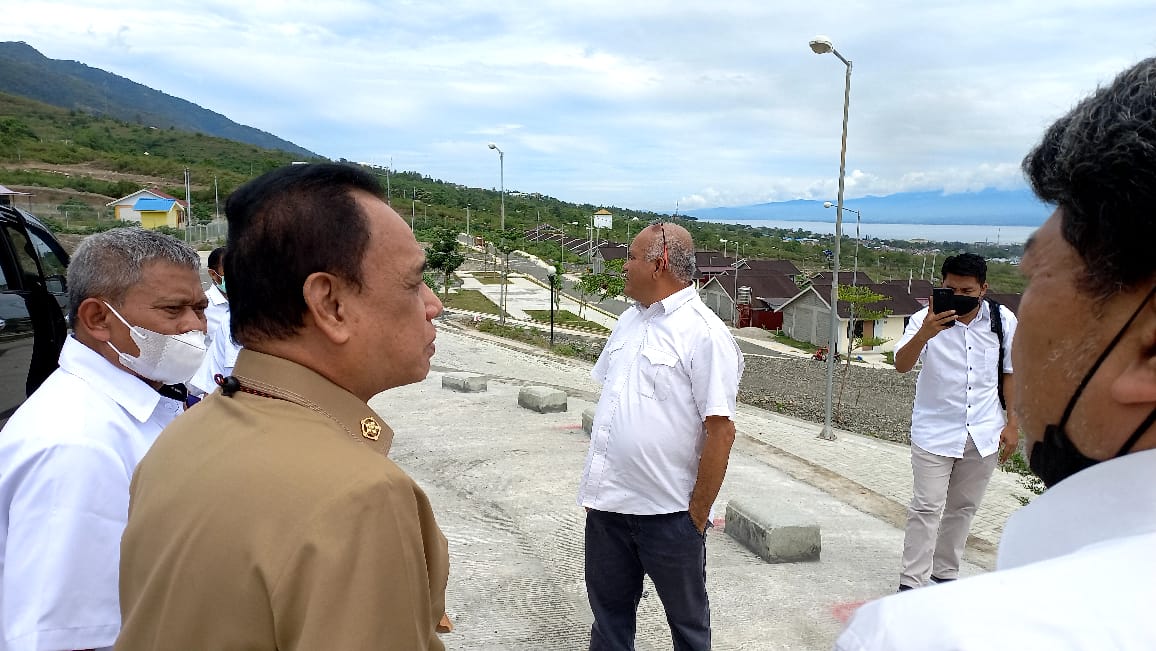 PALU– Wakil Gubernur (wagub) Sulawesi Tengah (Sulteng), Ma’mun Amir meninjau lokasi hunian tetap (huntap) Tondo 1 dan Tondo 2, Duyu serta pelelangan ikan di Kampung Lere, Selasa (4/1/2022).