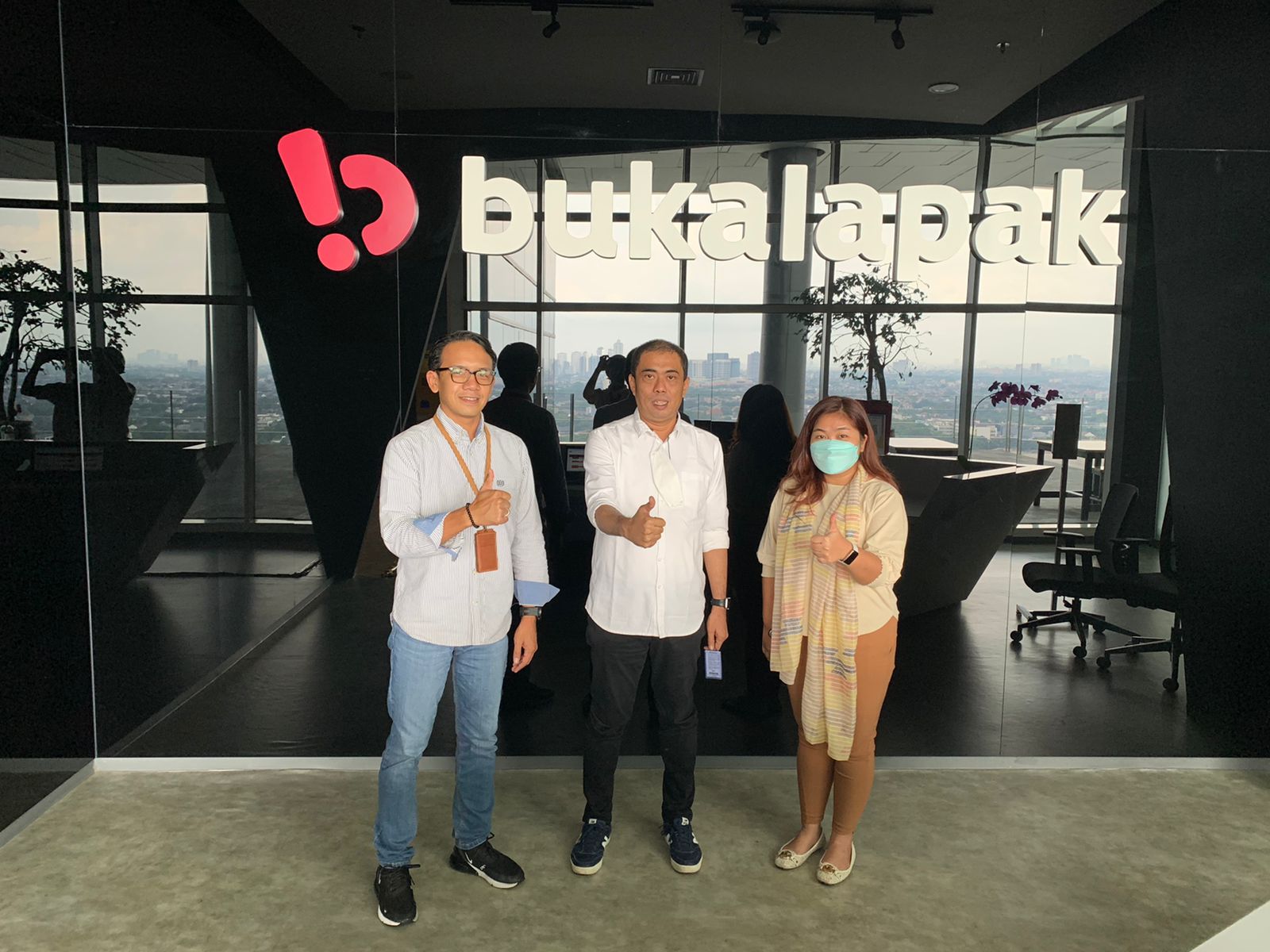 JAKARTA– Ketua Kamar Dagang dan Industri (Kadin) Kabupaten Donggala, Rahmad M Arsyad memenuhi undangan Direktur Buka Pengadaan atau Bukalapak, Hita Supranjaya di kantor Bukalapak Headquarter Metropolitan Tower, Jalan RA Kartini Cilandak, Jakarta Selatan, Jumat (28/1/2021).