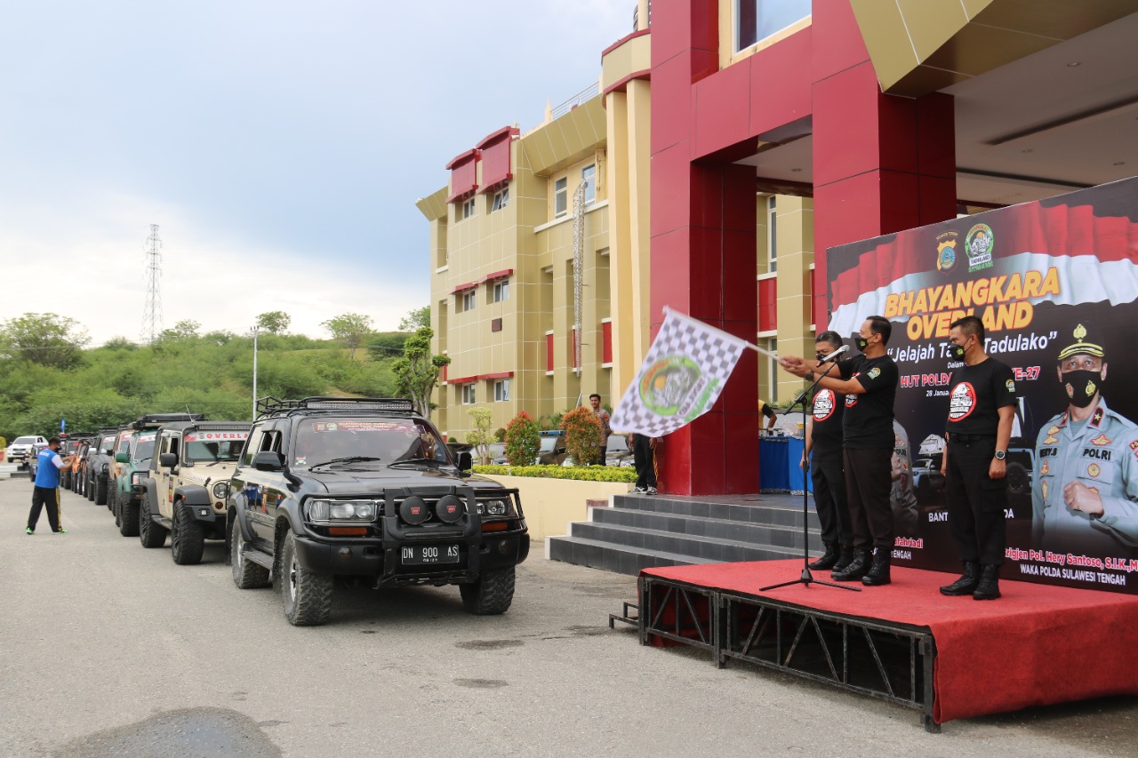 Dengan tajuk Bhayangkara Overland “Jelajah Bumi Tadulako” 22 unit mobil offroader dilepas Wakil Kapolda Sulteng, Brigjen Polisi Hery Santoso di halaman mapolda setempat, Jalan Soekarno Hatta, Kota Palu, Jumat (28/1/2022).