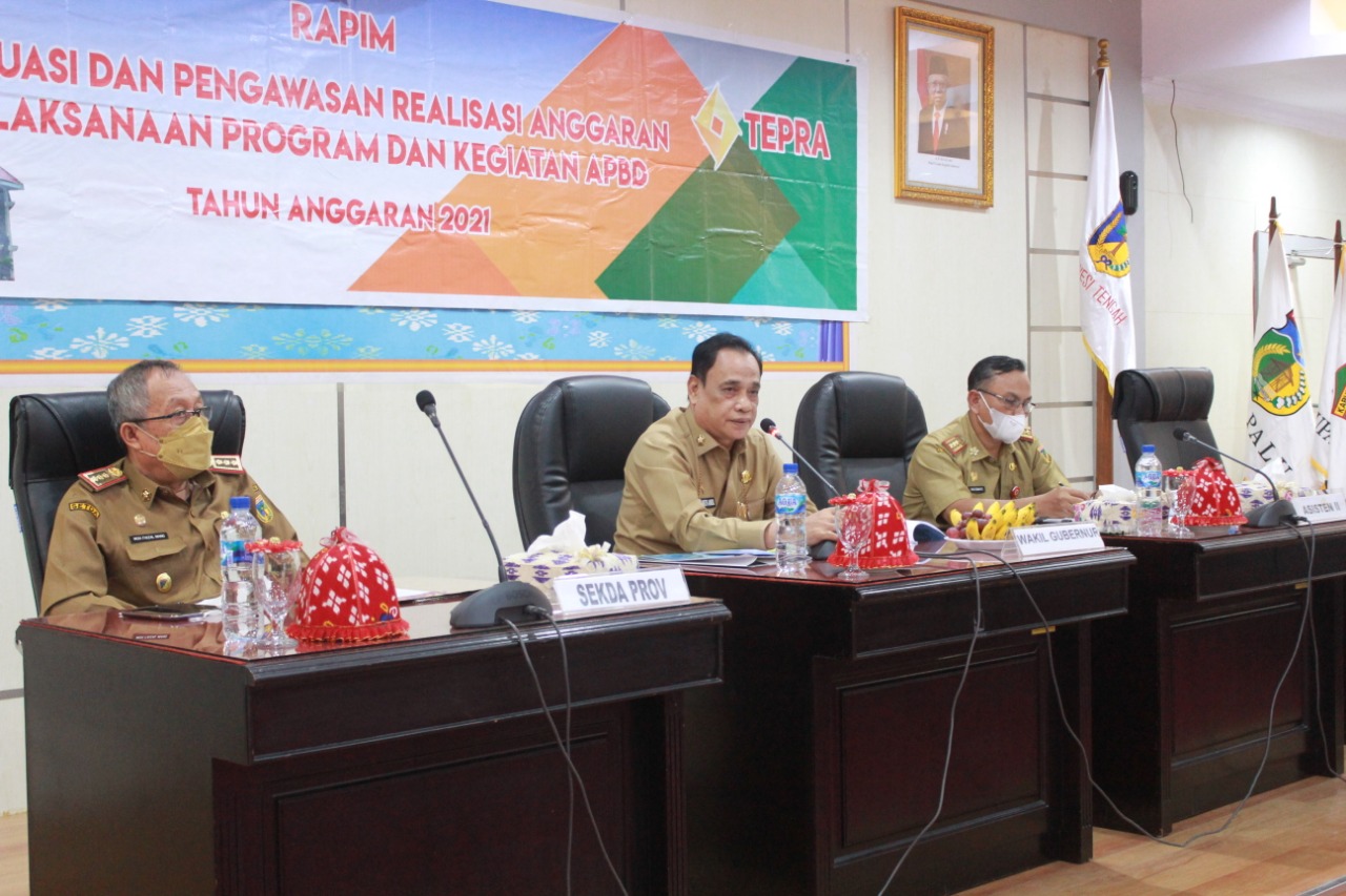 PALU– Wakil Gubernur (Wagub) Sulawesi Tengah (Sulteng), Ma’mun Amir mewakili Gubernur Rusdy Mastura memimpin TEPRA APBD Provinsi tahun anggaran 2021 di Gedung Pogombo, Selasa (8/2/2022).