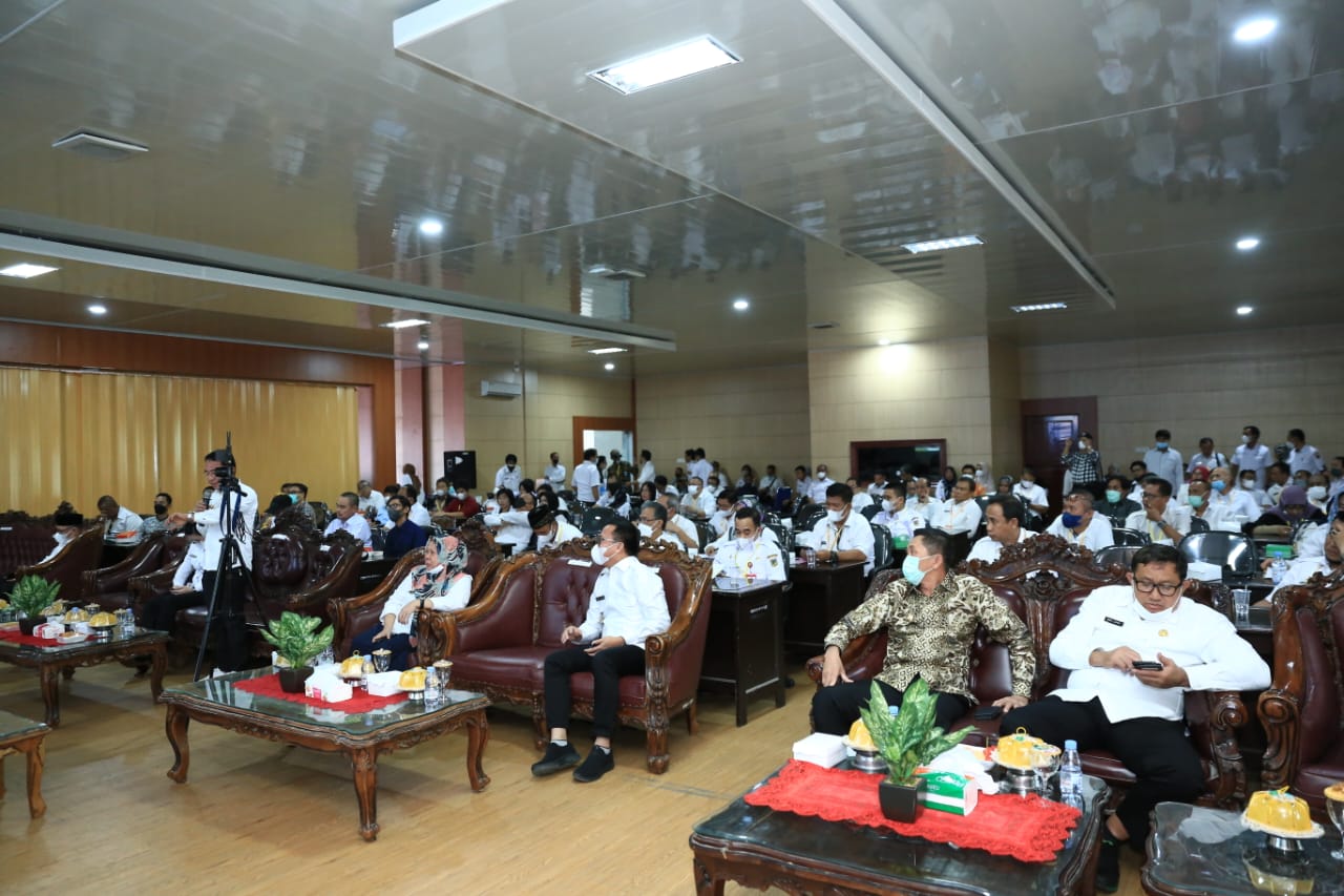 PALU– Gubernur Sulawesi Tengah (Sulteng), Rusdy Mastura membuka rapat koordinasi (Rakor) gubernur bersama bupati/walikota Palu Pengembangan Kawasan Pangan Nusantara di Gedung Pertemuan Bappeda, Rabu (13/7/2022).