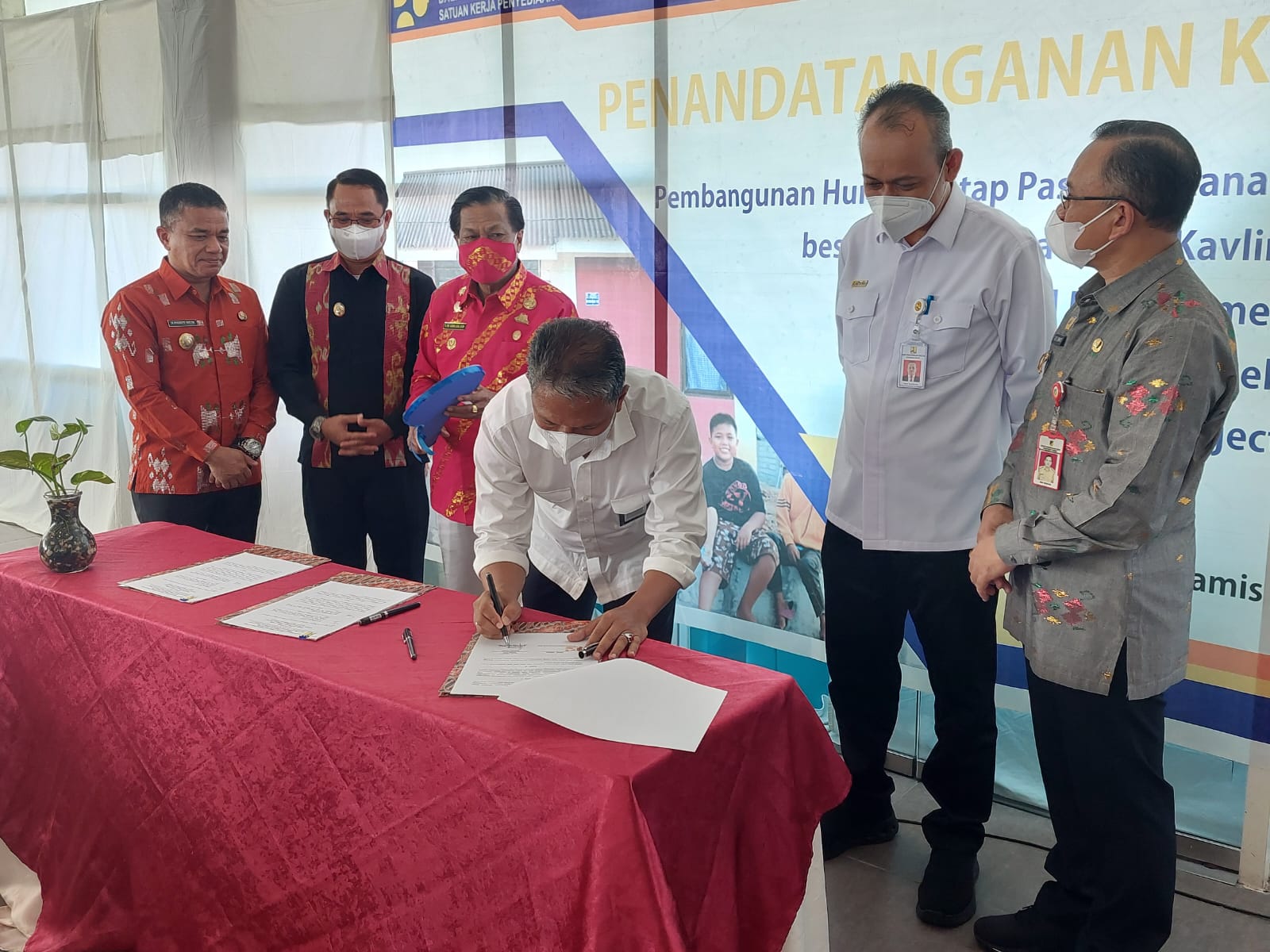 PALU– Pelaksana Tugas (Plt) Sekretaris Provinsi (Sekprov) Sulawesi Tengah (Sulteng), Rudi Dewanto menghadiri penandatanganan Kontrak Paket Pekerjaan Pembangunan Hunian Tetap (Huntap) Pascabencana Sulteng Tahap 2A dan TMC-2 CSRRP antara penyedia jasa pembangunan huntap dan pemerintah, bertempat di sebuah hotel Jalan Basuki Rahmat, Kota Palu, Kamis (21/7/2022).