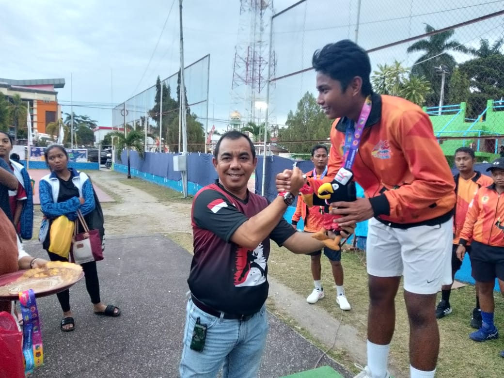 Medali bagi para pemenang cabor tenis lapangan tersebut diserahkan oleh Ketua KONI Parimo, Faisan Badja.