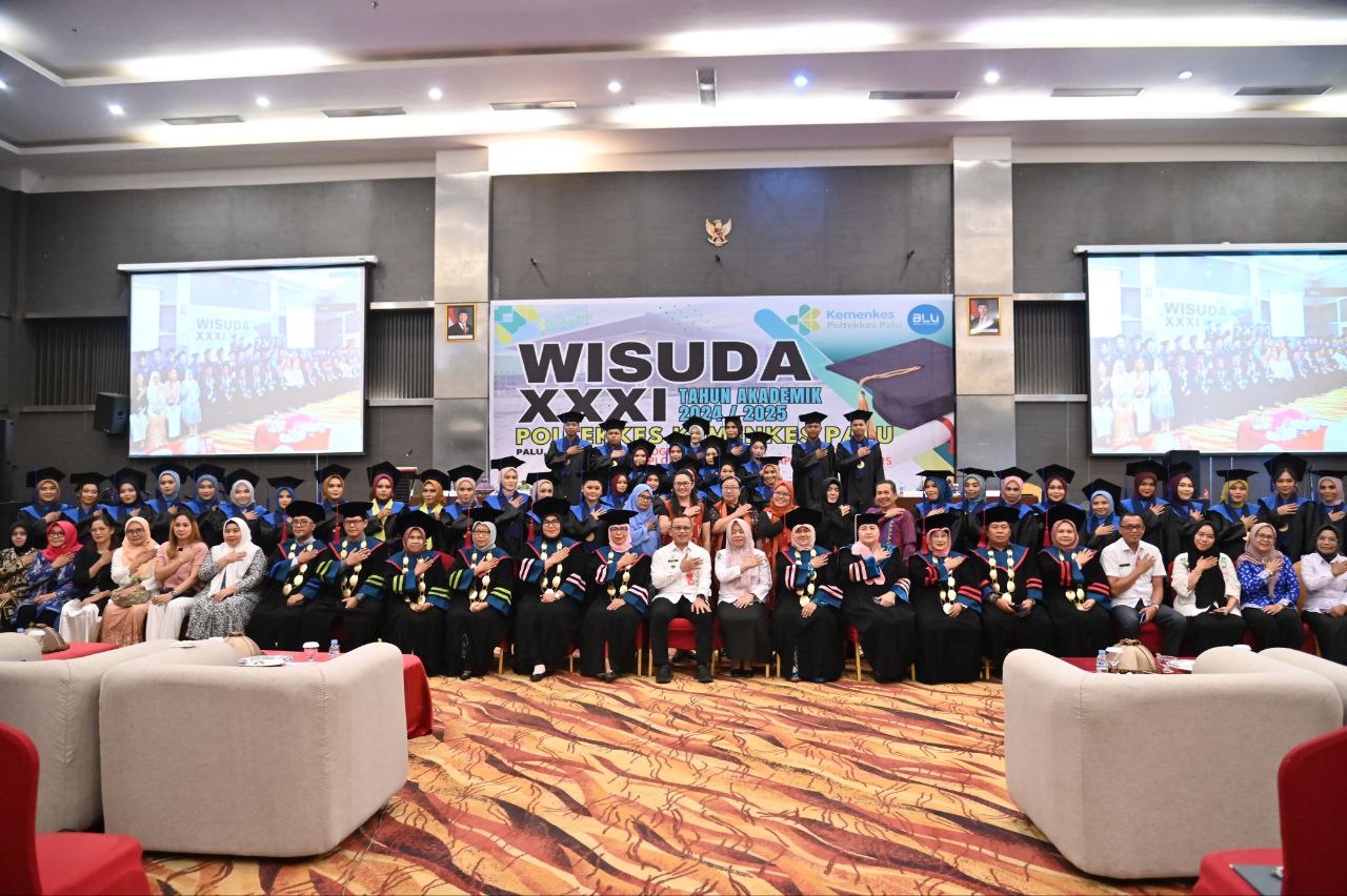 PALU– Suasana haru dan bangga menghiasi Wisuda ke XXXI (31) Politeknik Kesehatan (Poltekkes) Kementerian Kesehatan (Kemenkes) Palu Tahun Akademik 2024/2025 pada Rabu (28/5/2025) di sebuah hotel Jalan Basuki Rahmat, Kota Palu.