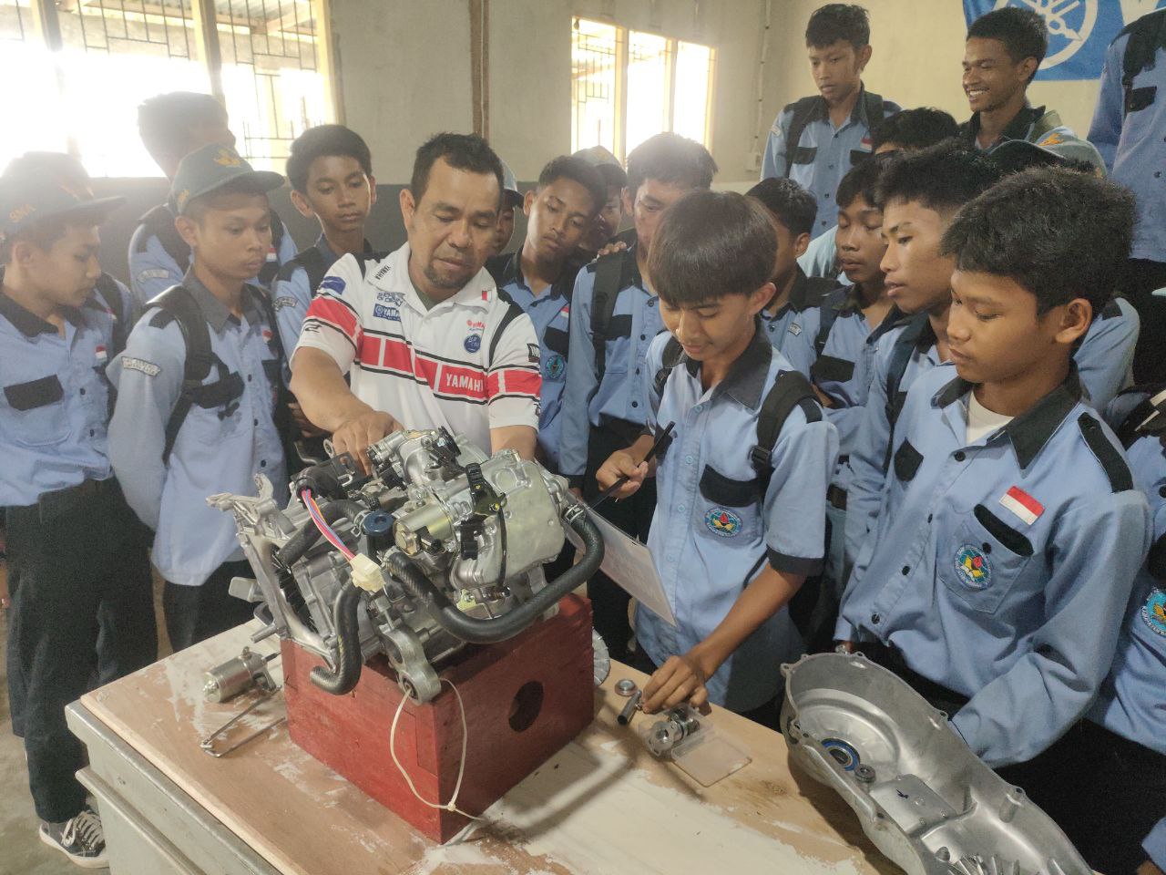 Peduli Pendidikan, Yamaha Paparkan Teknologi Terbaru Sepeda Motor di SMKN 1 Simpang Raya