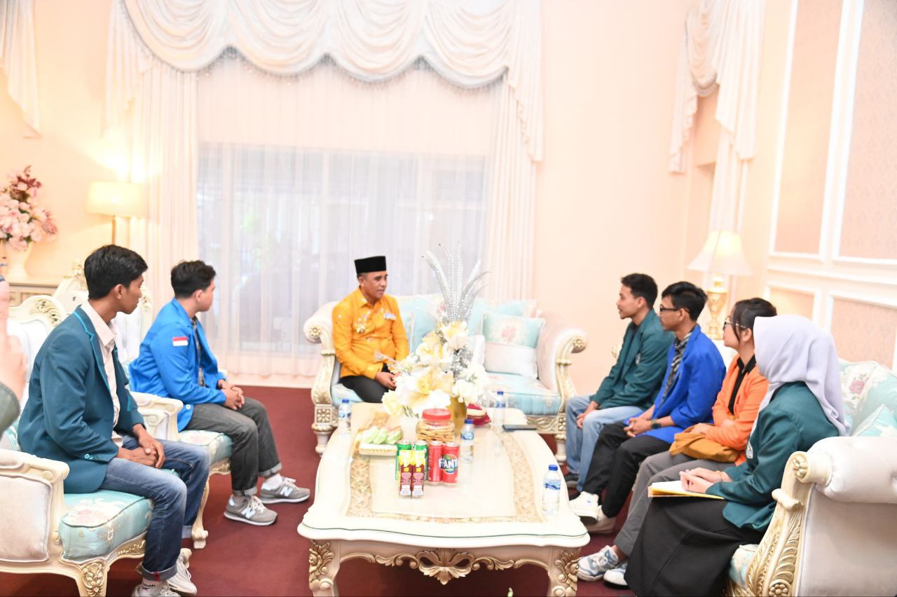 PALU– Gubernur Sulawesi Tengah (Sulteng), Anwar Hafid menerima audiensi sejumlah perwakilan Presiden Mahasiswa (Presma) dari berbagai perguruan tinggi di Sulteng seperti Universitas Tadulako, UIN Datokorama, Universitas Alkhairaat, Selasa (24/6/2025).