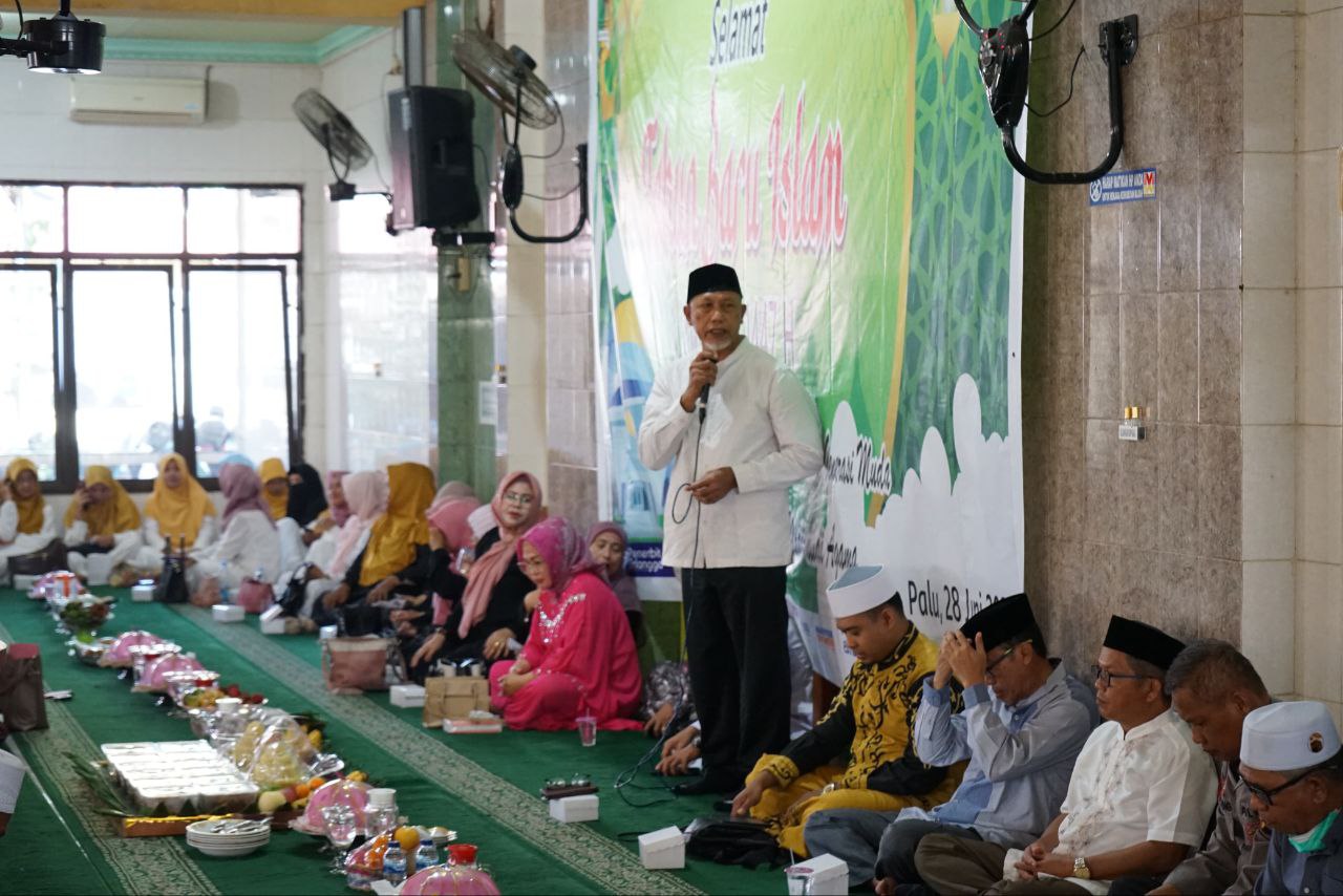 PALU– Wali Kota Palu diwakili Asisten Pemerintahan dan Kesra, Usman menghadiri acara perayaan Tahun Baru Islam 1 Muharram 1447 Hijriah yang dilaksanakan di Masjid Sabillul Muhtadin Jalan Sam Ratulanngi pada Sabtu (28/6/2025).