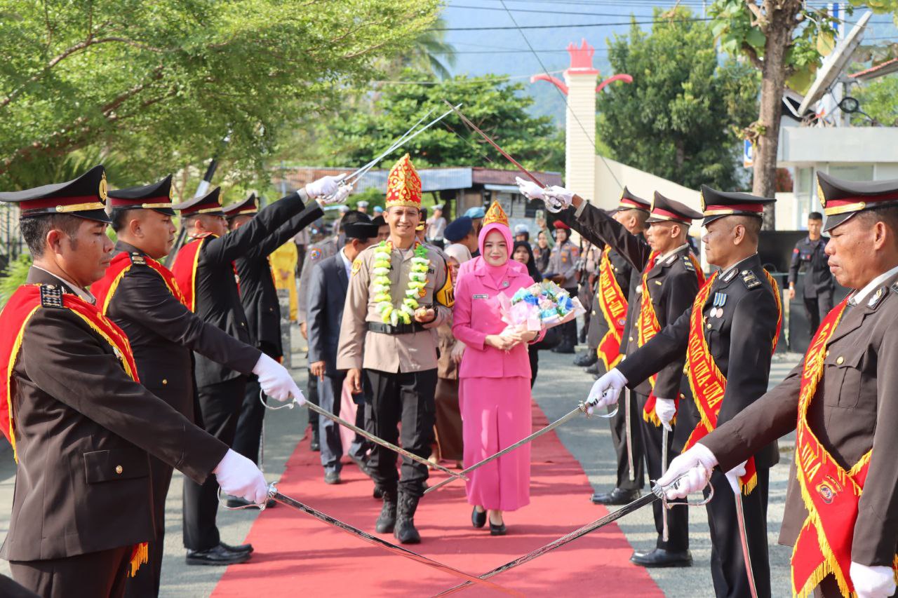 Dalam kesempatan itu, kapolres didampingi istri, Rosya Yanna selaku Ketua Cabang Bhayangkari Touna yang baru.