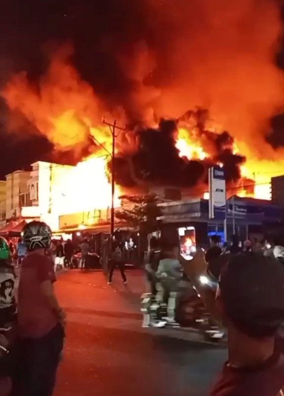 Kebakaran yang terjadi sekira pukul 19.00 Wita itu menghanguskan belasan lapak pedagang.