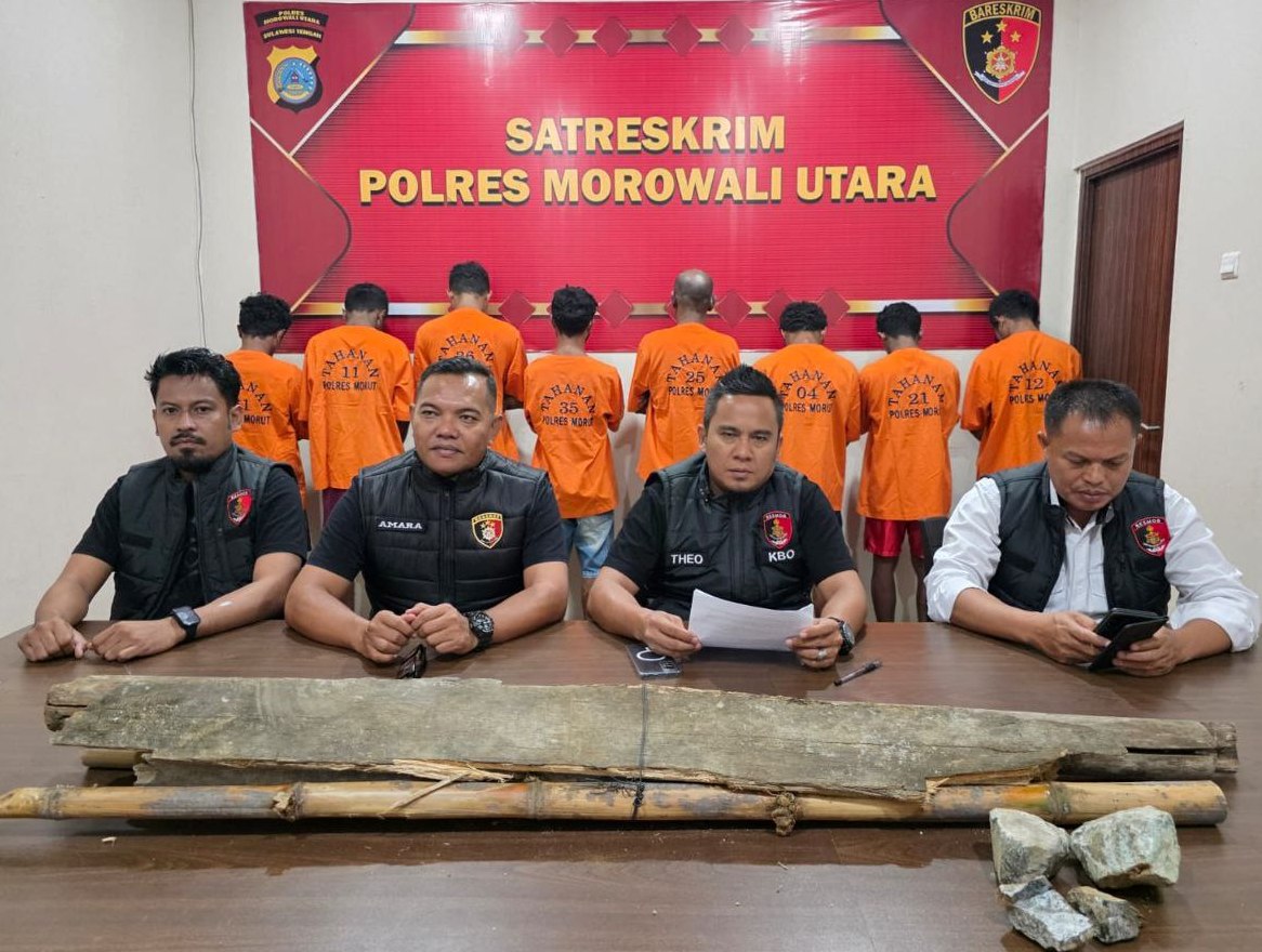 MORUT– Pihak Polres Morowali Utara (Morut) menetapkan delapan tersangka pascabentrokan antar warga Desa Bimor Jaya dan Keuno yang terjadi pada Sabtu (19/7/2025) siang sekira pukul 14.30 Wita di perempatan Desa Mohoni, Kecamatan Petasia Timur.