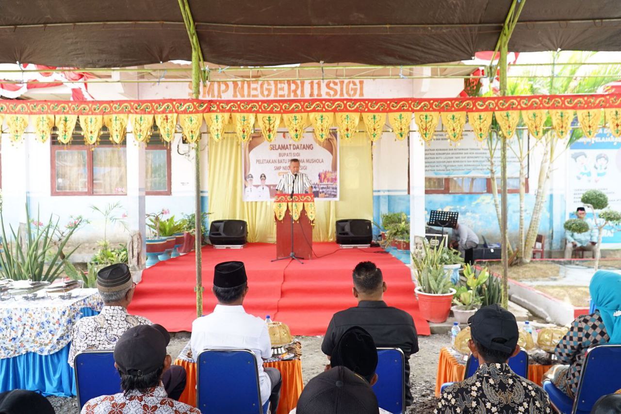 SIGI– Bupati Sigi, Mohamad Rizal Intjenae menghadiri acara Peletakan Batu Pertama Pembangunan Musala di Sekolah Menengah Pertama Negeri (SMPN) 11 Desa Sidondo I, Kecamatan Sigi Biromaru, Jumat (22/8/2025).