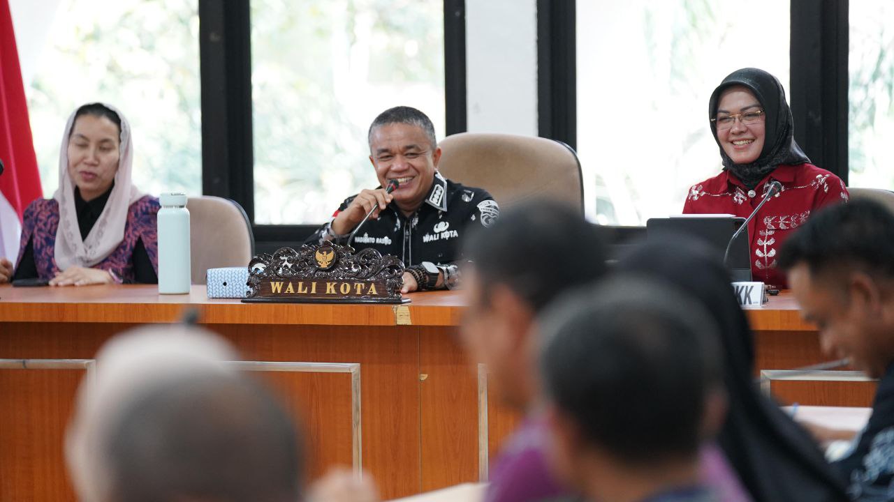 PALU– Wali Kota Palu, Hadianto Rasyid bersama Wakil Wali Kota (Wawali), Imelda Liliana Muhidin memimpin langsung Rapat Koordinasi Evaluasi Percepatan Penurunan Stunting di Ruang Rapat Bantaya Kantornya, Kamis (4/9/2025).