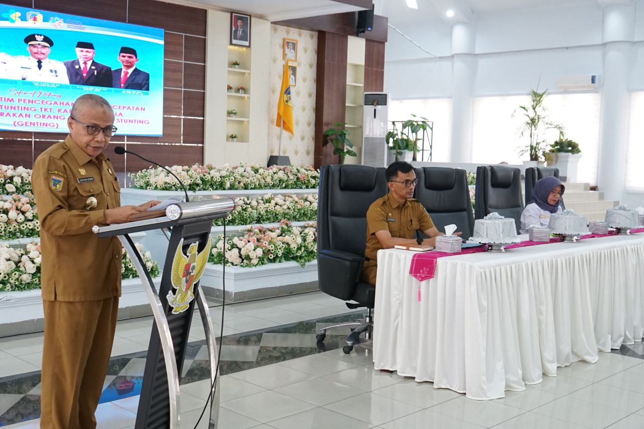 DONGGALA– Sekretaris Kabupaten (Sekkab) Donggala, Rustam Efendi mewakili bupati membuka secara resmi Rapat Koordinasi (Rakor) Tim Pencegahan dan Percepatan Penurunan Stunting (TP3S) Kabupaten Donggala, Senin (8/9/2025).
