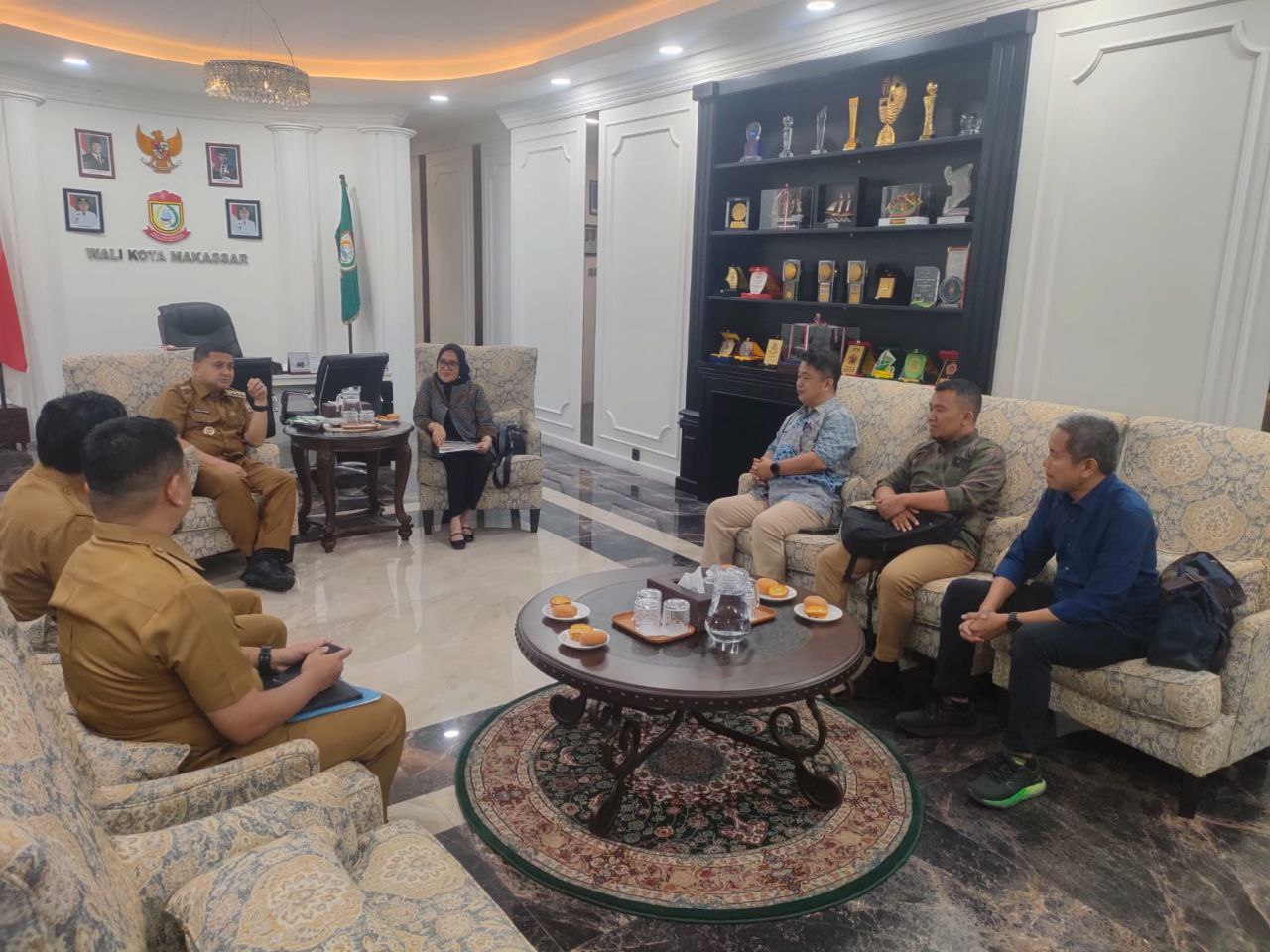 Kunjungan tersebut diterima langsung oleh Wali Kota Makassar, Munafri Arifuddin, di ruang kerjanya.