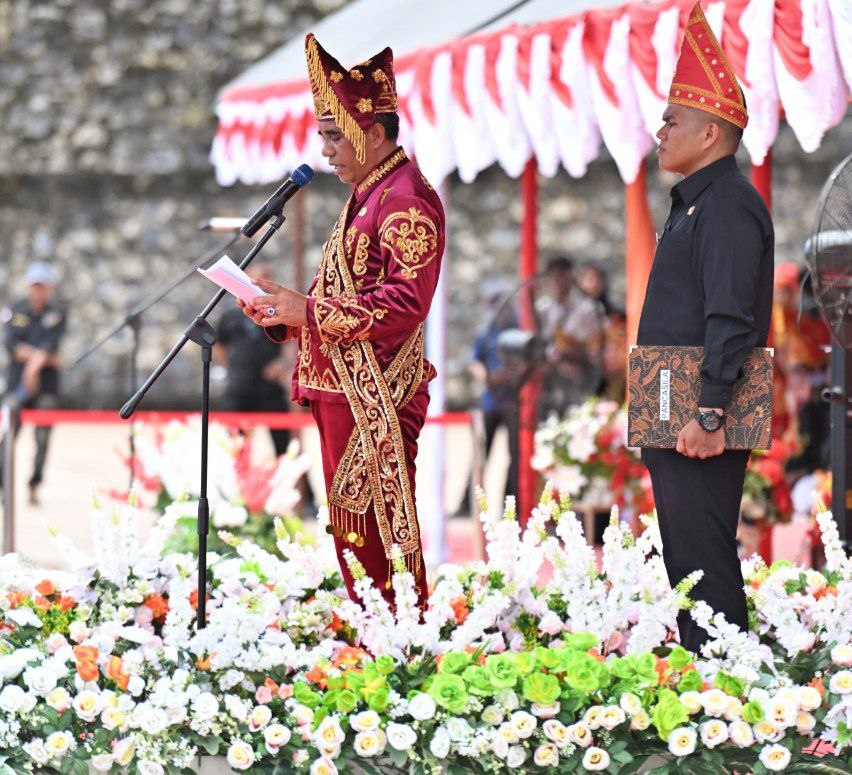 Dalam amanatnya, Gubernur Anwar Hafid menyampaikan rasa syukur dan kebanggaan atas kemajuan pesat Morut yang kini berusia 12 tahun.