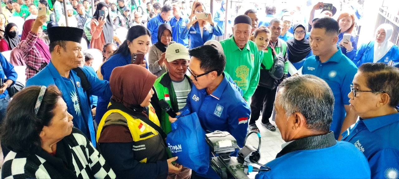 Sekretaris Jenderal (Sekjen) Dewan Pimpinan Pusat (DPP) PAN, Eko Hendro Purnomo atau biasa dikenal dengan Eko Patrio berkesempatan hadir dalam kegiatan pembagian bantuan pangan tersebut.