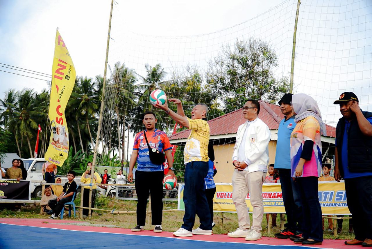 SIGI– Bupati Sigi, Mohamad Rizal Intjenae membuka kegiatan Turnamen Voli Bupati Sigi Cup 2025 di lapangan Volly BMC Desa Potoya, Kecamatan Dolo, Ahad (2/11/2025).