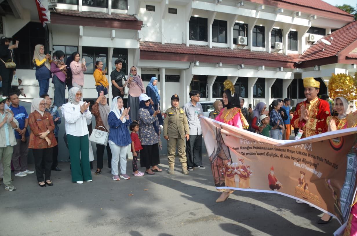 PALU– Wakil Wali Kota (Wawali) Palu, Imelda Liliana Muhidin bersama Sekretaris Kota Palu, Irmayanti Pettalolo secara simbolis melepas peserta Lomba Busana Karnaval dan Pawai Budaya Nusantara di halaman kantornya, Jumat (7/11/2025).