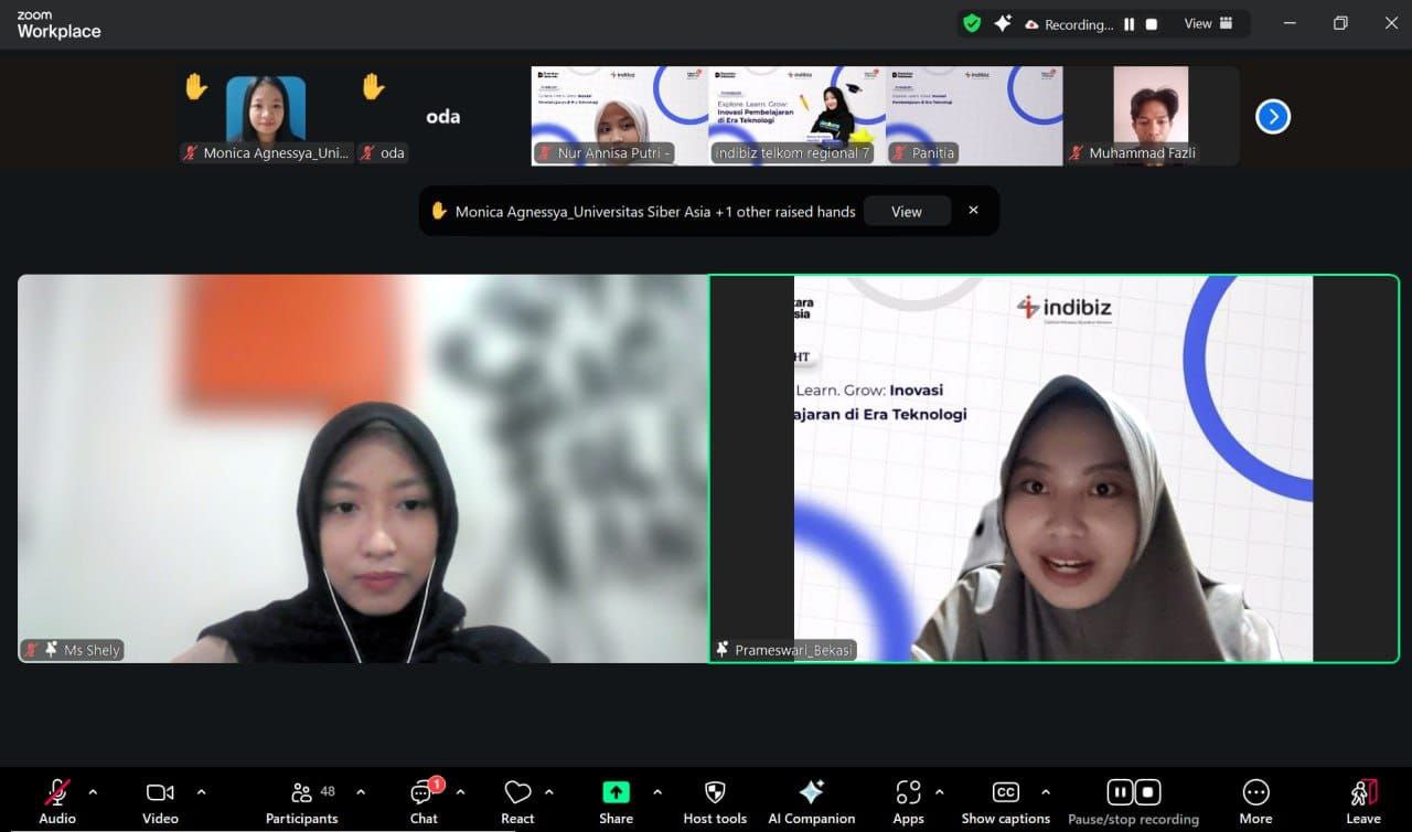 Webinar kali ini menghadirkan Sherly Nurfadya Iskandar, Head Branch Educourse.id Makassar, yang membagikan pengalaman serta praktik penerapan AI dalam pembelajaran digital.