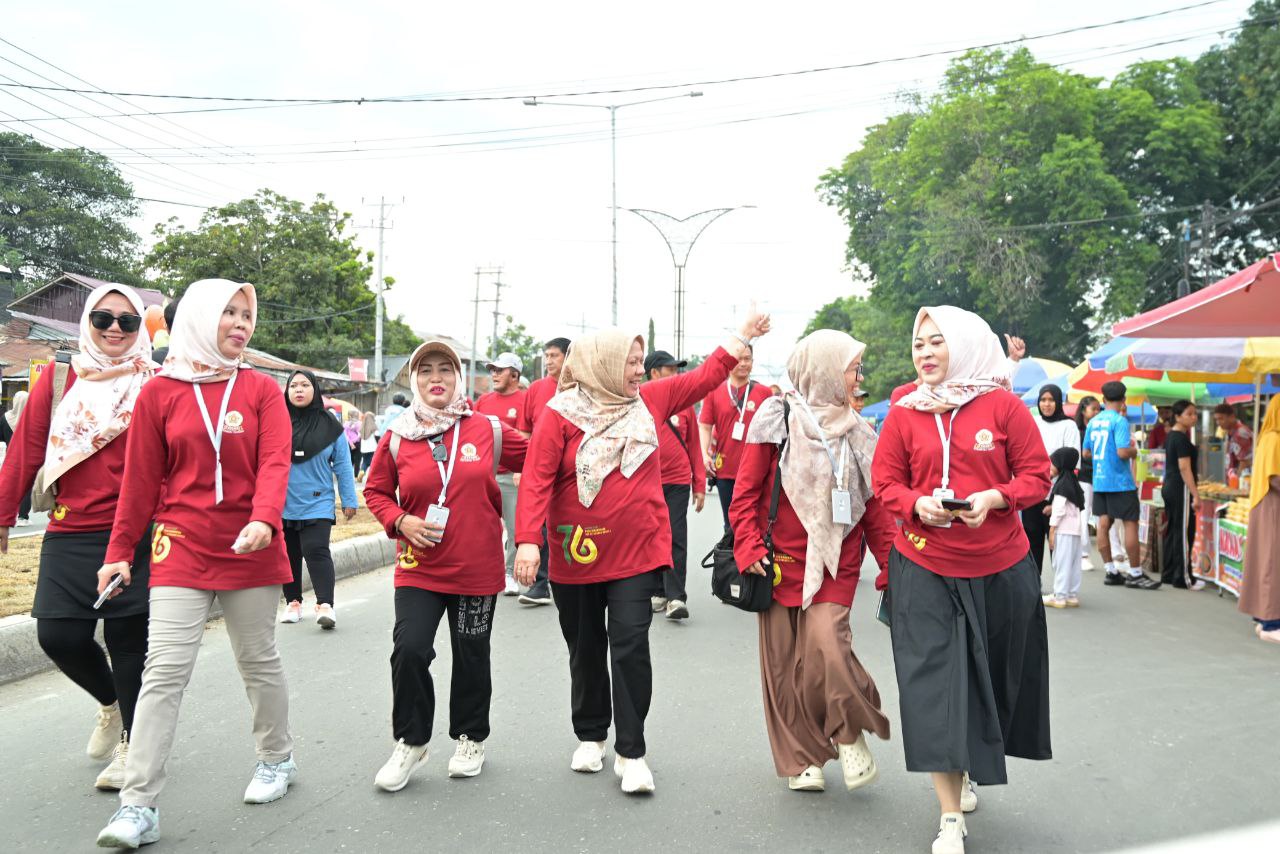 PALU– Wakil Gubernur (Wagub) Sulawesi Tengah, Reny A Lamadjido mengikuti Jalan Santai bersama Keluarga Alumni Universitas Gajah Mada/UGM (Kagama) Sulteng dalam memperingati Dies Nastalis UGM ke 76, di halaman kantor Walikota Palu, Ahad (21/12/2025).