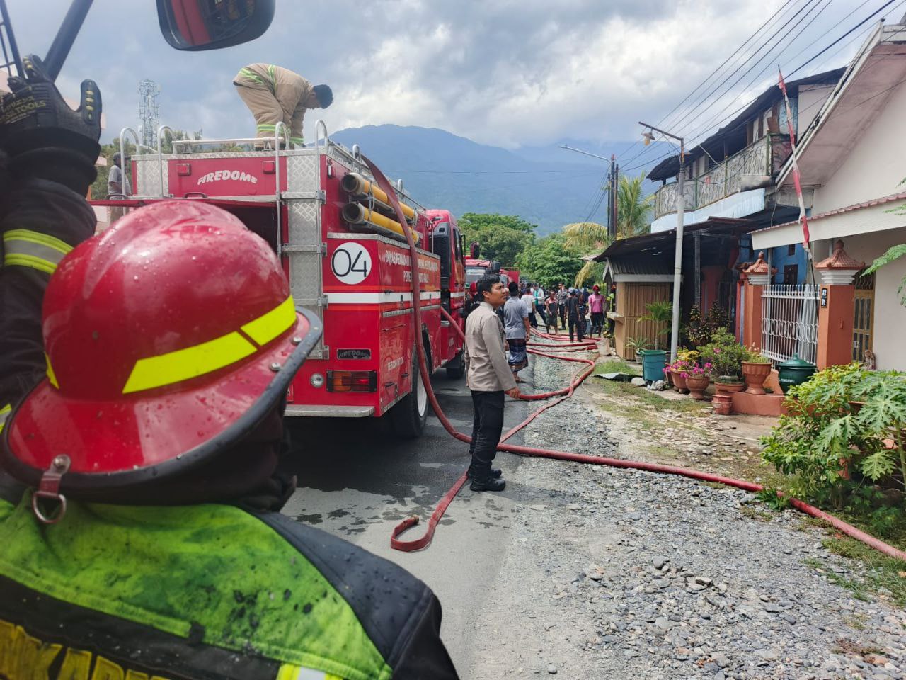 Bersama warga sekitar, saksi berupaya melakukan pemadaman api secara manual sambil menunggu kedatangan petugas pemadam kebakaran.