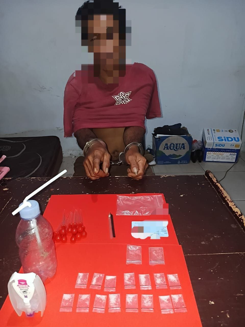 Dalam penggeledahan badan dan rumah yang disaksikan aparat desa serta warga setempat, polisi menemukan sejumlah barang bukti narkotika yang menguatkan dugaan keterlibatan pelaku.