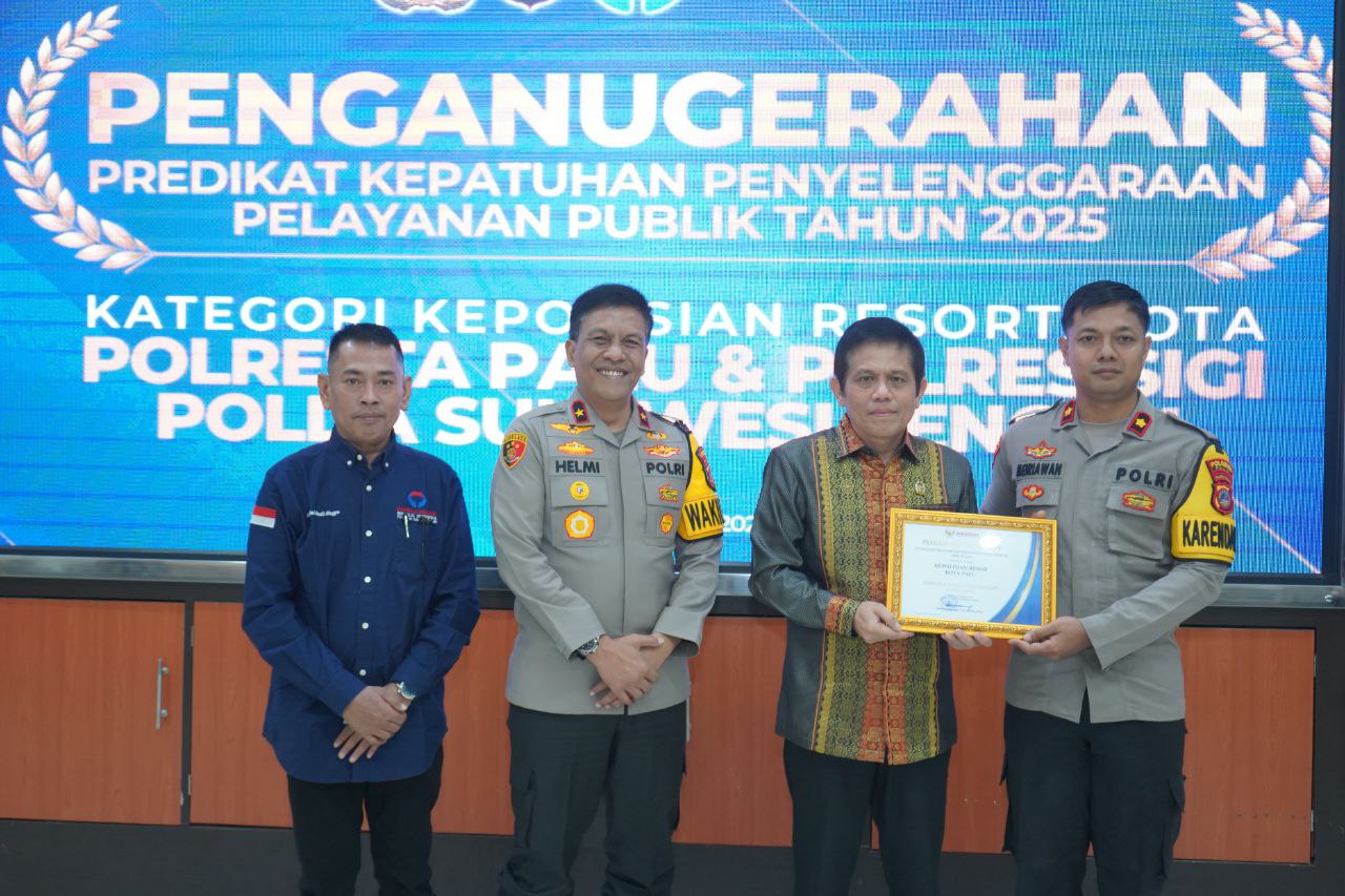 PALU– Polresta Palu meraih Penghargaan Predikat Kepatuhan Penyelenggaraan Pelayanan Publik Tahun 2025 yang diberikan oleh Ombudsman Republik Indonesia (RI).