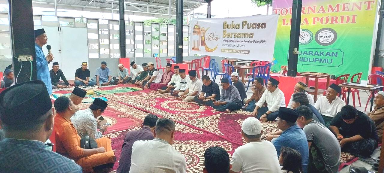PALU– Warga Padepokan Domino Palu (PDP) menggelar Buka Puasa Bersama pada pekan pertama Bulan Suci Ramadan di Warung Kopi Daeng Nasir atau WDN, Jalan Soekarno Hatta, Kota Palu, Sulawesi Tengah pada Sabtu (21/2/2026).