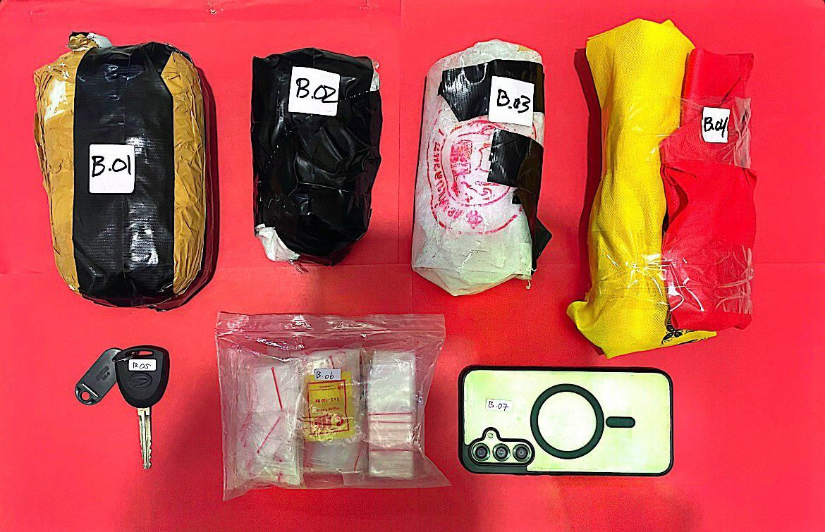 Dari hasil penggeledahan badan, rumah, dan kendaraan, petugas menemukan tiga paket besar diduga sabu-sabu seberat bruto 2,085 kilogram, telepon genggam Samsung A54, dan mobil Ayla merah DN 1153 FV.