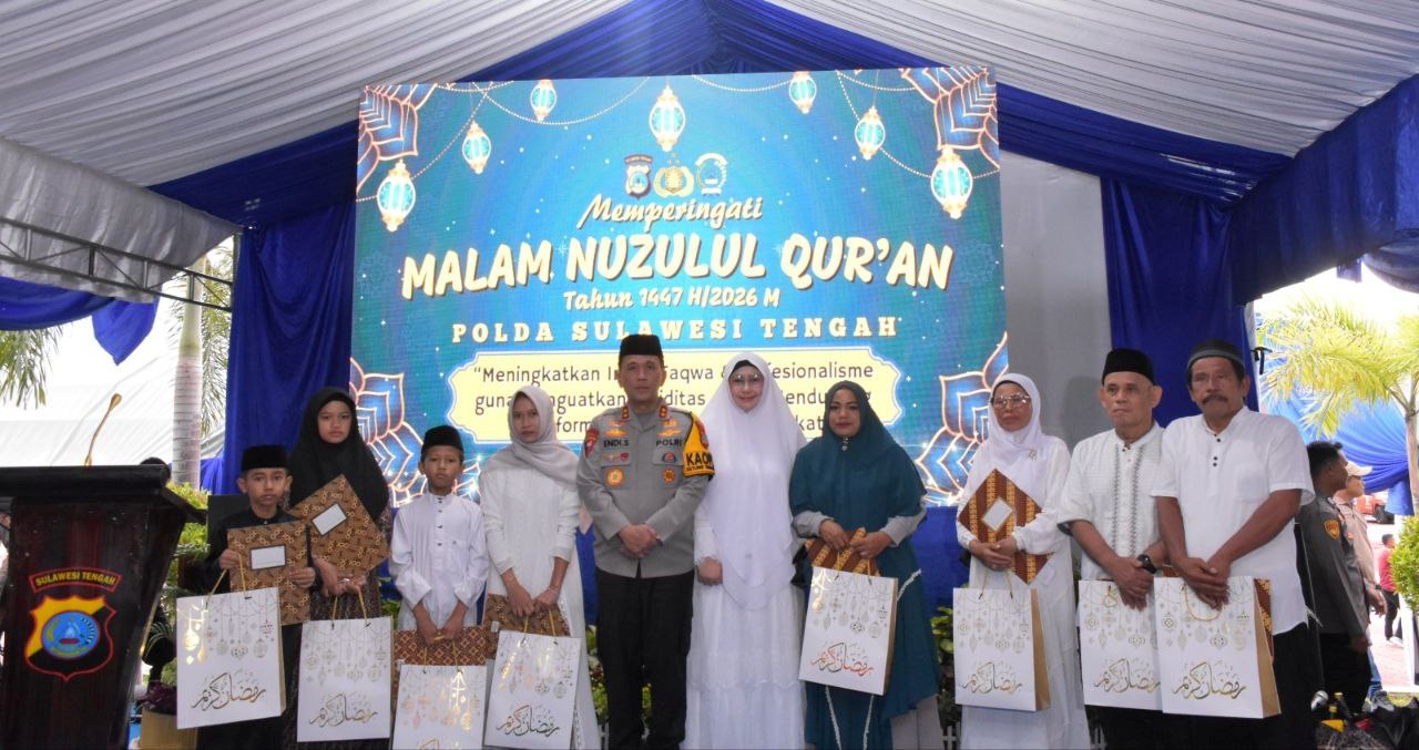 PALU– Polda Sulawesi Tengah (Sulteng) menggelar acara Malam Nuzulul Quran yang dirangkaikan dengan buka puasa bersama, Kamis (12/3/2026) sore, di halaman depan Mapolda Sulteng, Jalan Soekarno Hatta, Kota Palu.