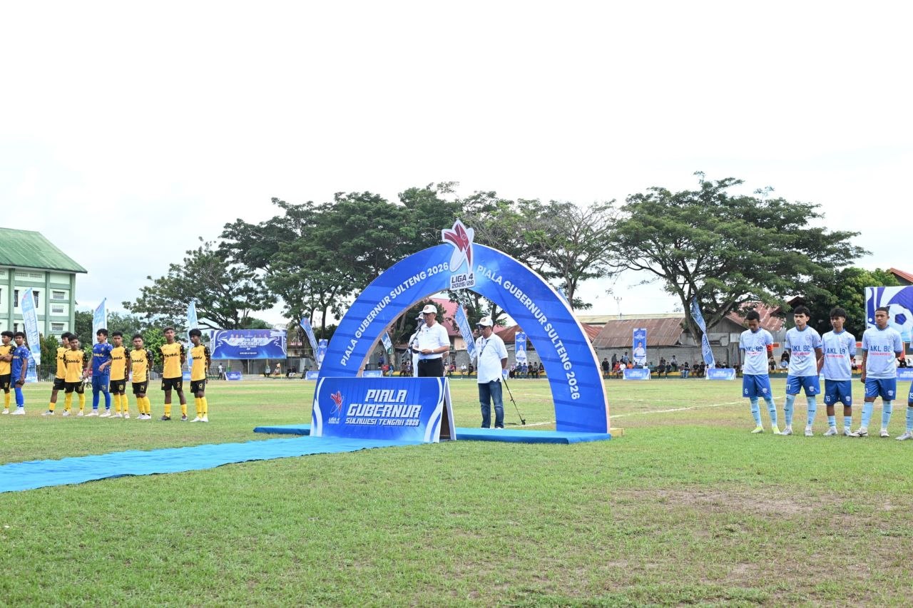 PALU– Gubernur Sulawesi Tengah (Sulteng), Anwar Hafid didampingi Ketua TP PKK Provinsi Sulawesi Tengah, Sry Nirwanti Bahasoan secara resmi membuka Liga 4 Piala Gubernur Sulteng Tahun 2026 di Lapangan Sepak Bola Faqih Rasyid, Kota Palu, Jumat (10/4/2026).