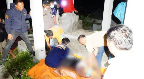 BANGGAI– Polisi melakukan olah tempat kejadian perkara (TKP) penemuan jenazah pria gantung diri di kompleks Pekuburan Cina, Jalan Pulau Kalimantan, Kelurahan Kompo,