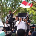 PALU– Wali Kota Palu, Hadianto Rasyid didampingi sejumlah pejabat menemui langsung warga yang menggelar aksi demonstrasi di halaman kantornya, Rabu (10/9/2025). Aksi