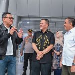 PALU– Gubernur Sulawesi Tengah (Sulteng), Anwar Hafid dan Wakil Gubernur (Wagub) Sulteng, Reny A Lamadjido menyambut kunjungan kerja (kunker) Menteri Badan Perlindungan